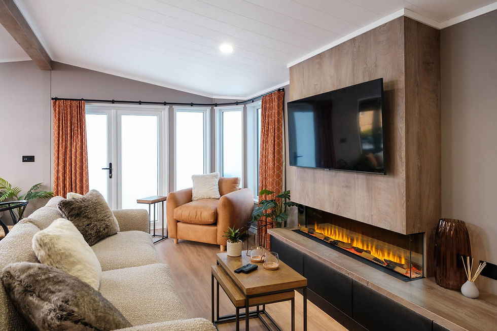 The exterior of the Vogue immediately makes an impression, with its distinctive dormer roof design, elegant Georgian-style windows and striking architectural lines. Large triple sliding doors at the front of the lodge allow natural light to flood the interior and create a seamless connection between the living space and your outdoor decking area.